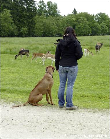 Um ein "kontrollierbares" Jagdverhalten des Hundes zu erreichen, lassen wir in dieses Antijagdtraining viele Trainingseinheiten der Jagdhundeausbildung einfließen.