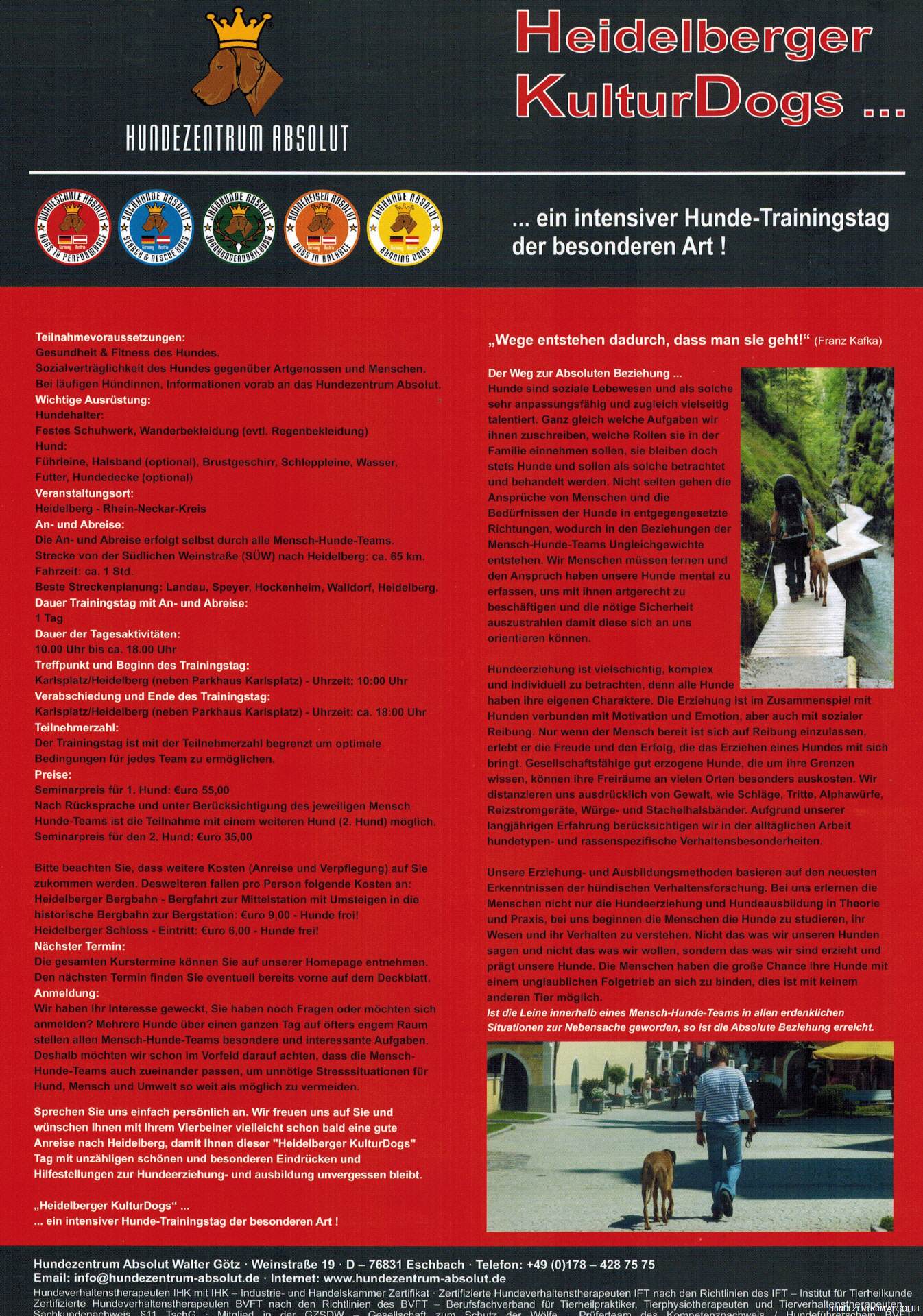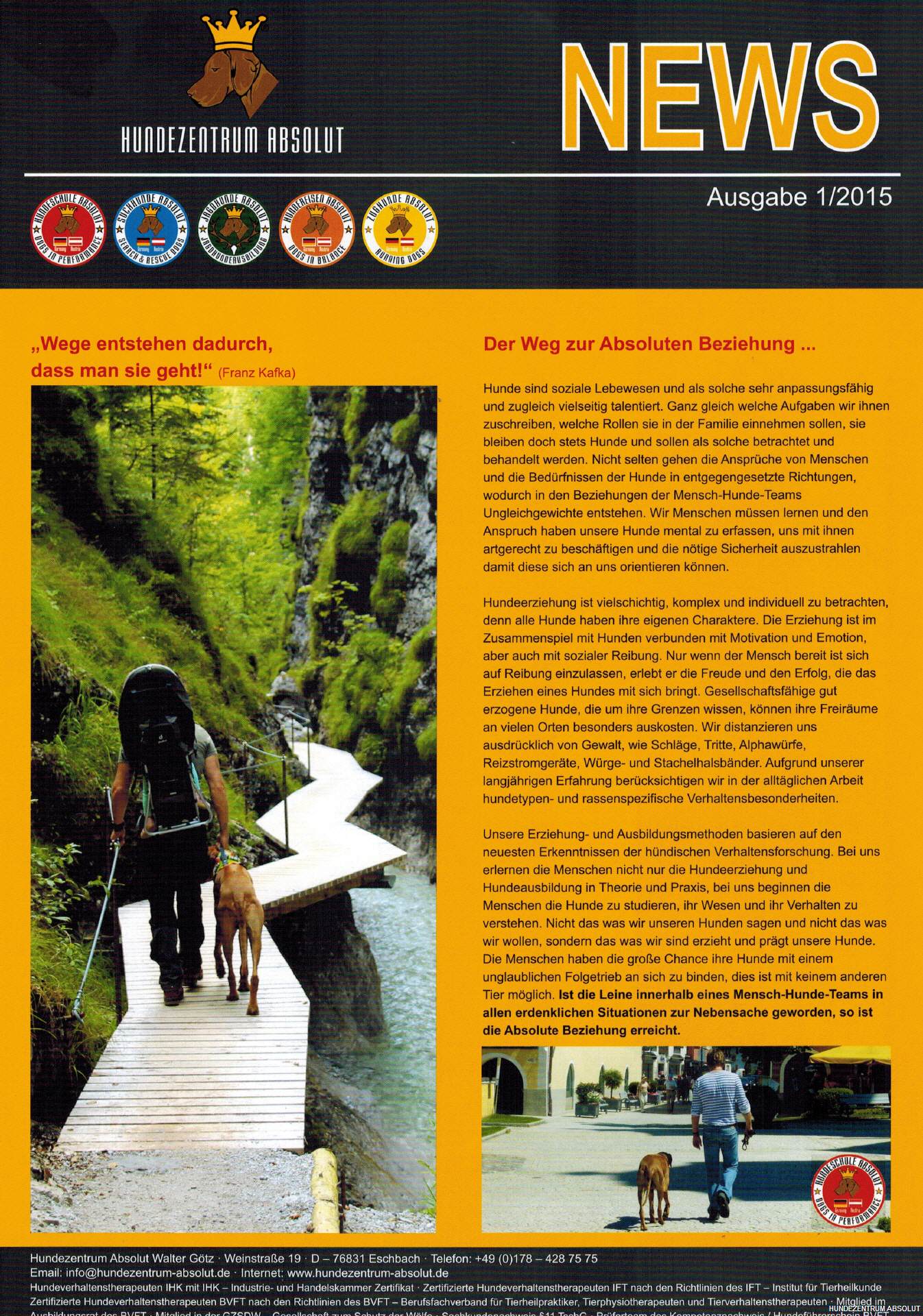 Hundeverhaltens- therapeuten IHK Das Trainerteam des Hundezentrum Absolut hat sich dem Test der IHK - Industrie- und Handelskammer gestellt und wurde mit den Titeln Hundeverhaltenstherapeuten IHK ausgezeichnet.