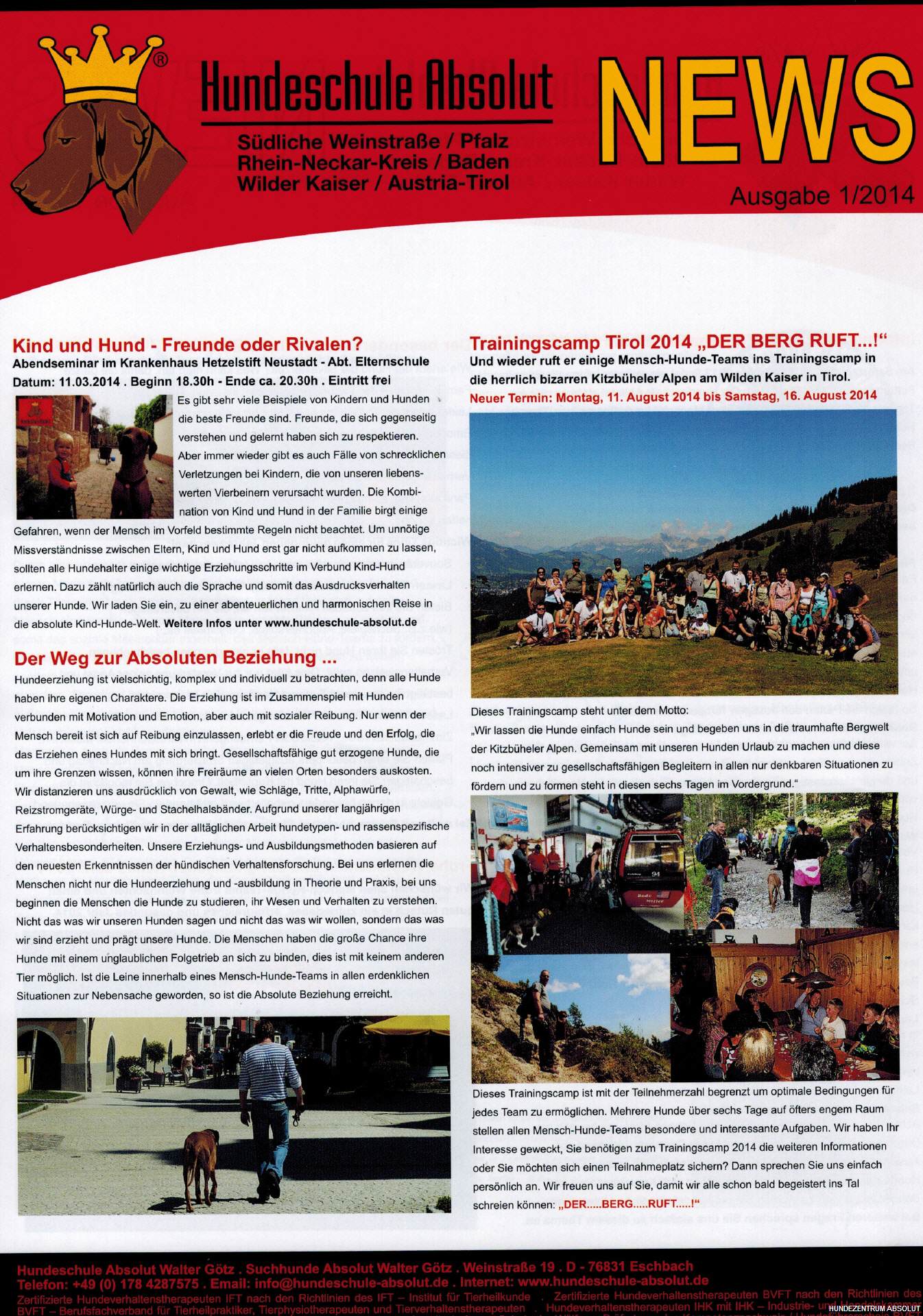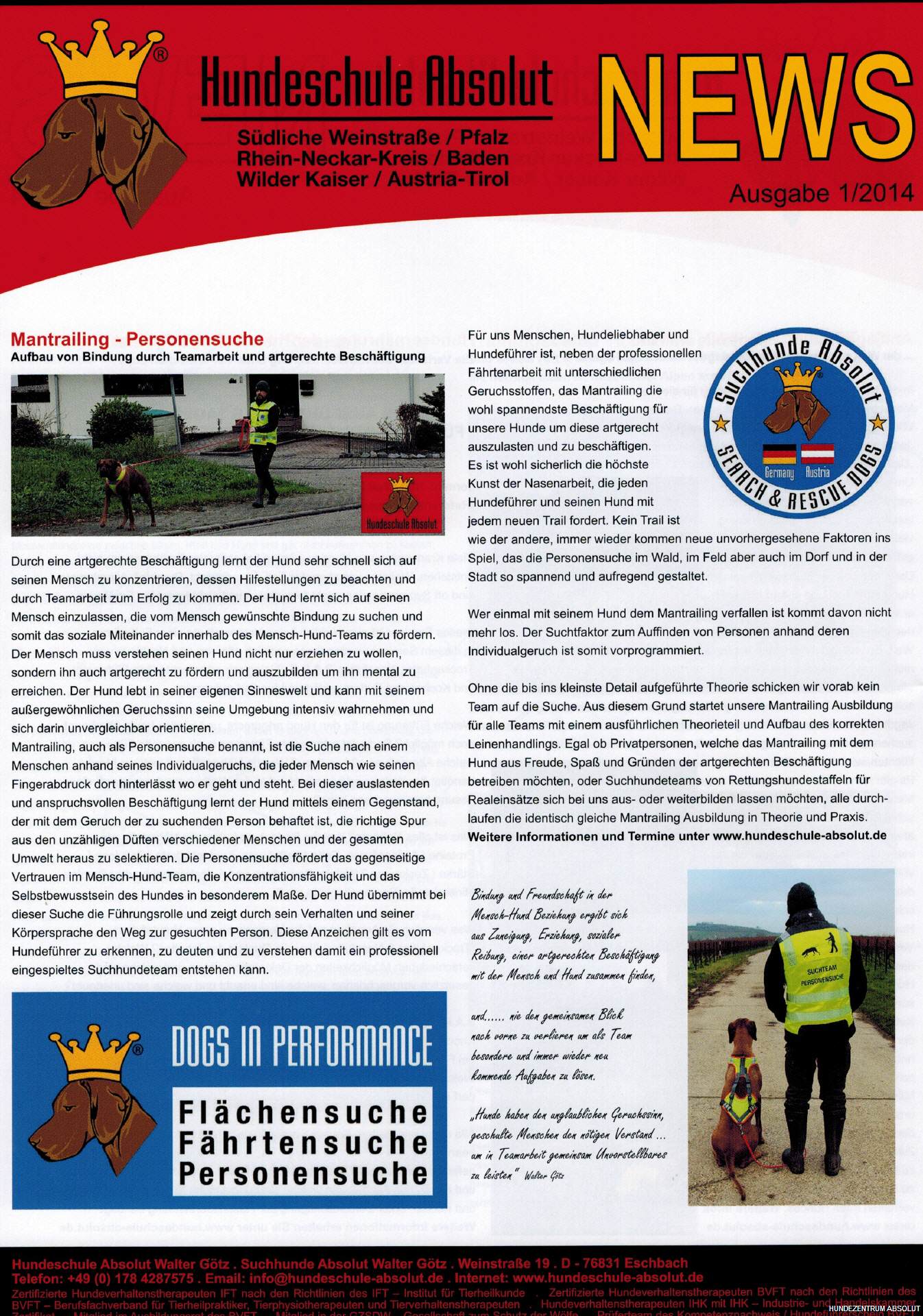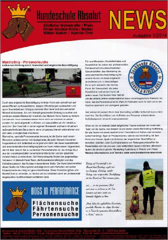 Erlaubnis §11 Abs.1 Nr.8f TschG Das Trainerteam des Hundezentrum Absolut hat die Erlaubnis zur gewerbsmäßigen Ausbildung von Hunden für Dritte bzw. zur gewerbsmäßigen Anleitung der Tierhalter für die Ausbildung der Hunde.