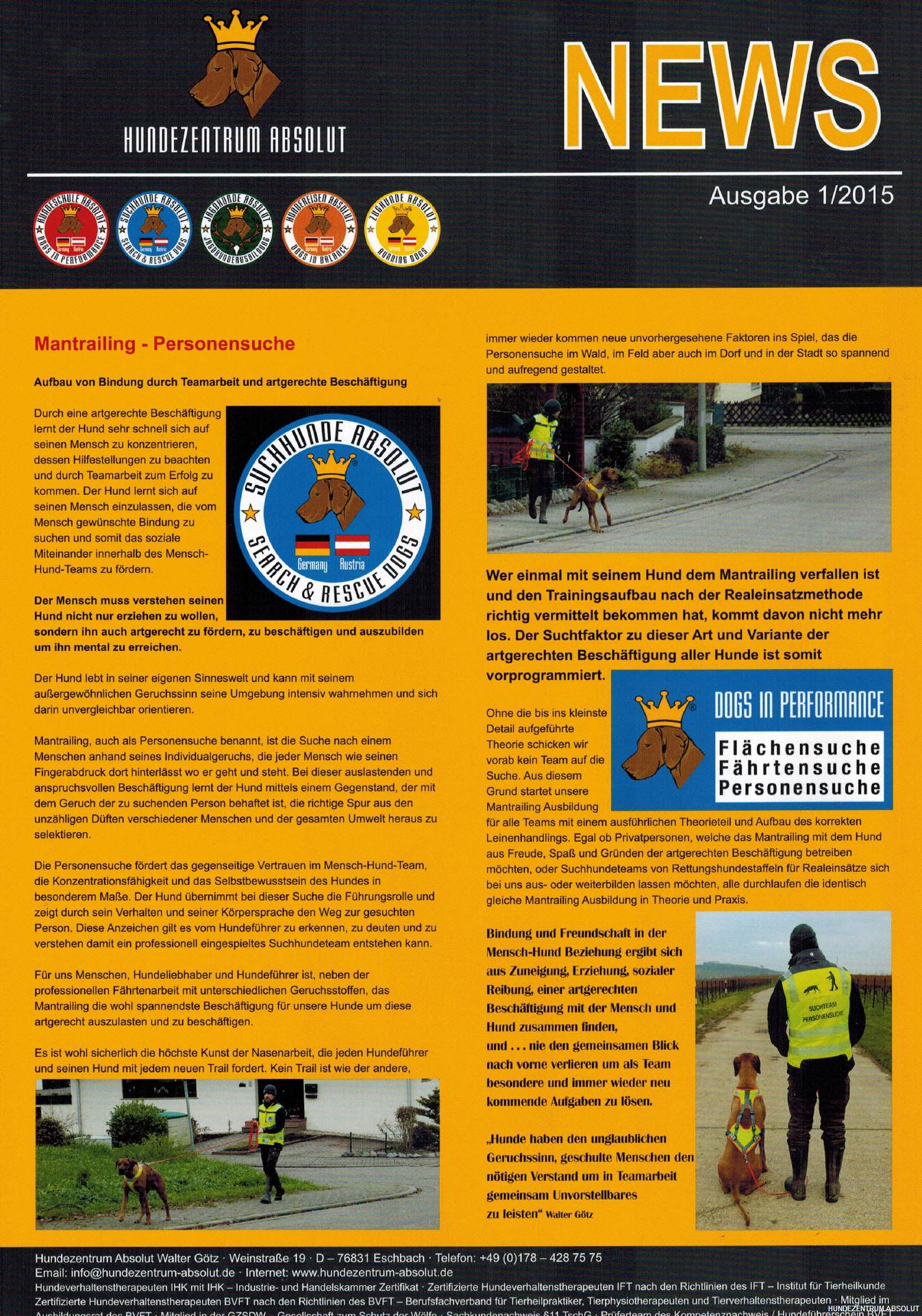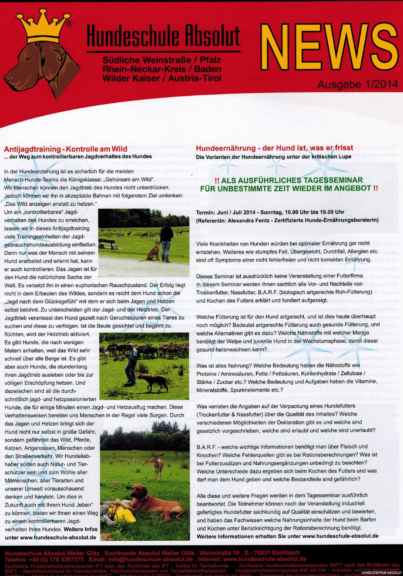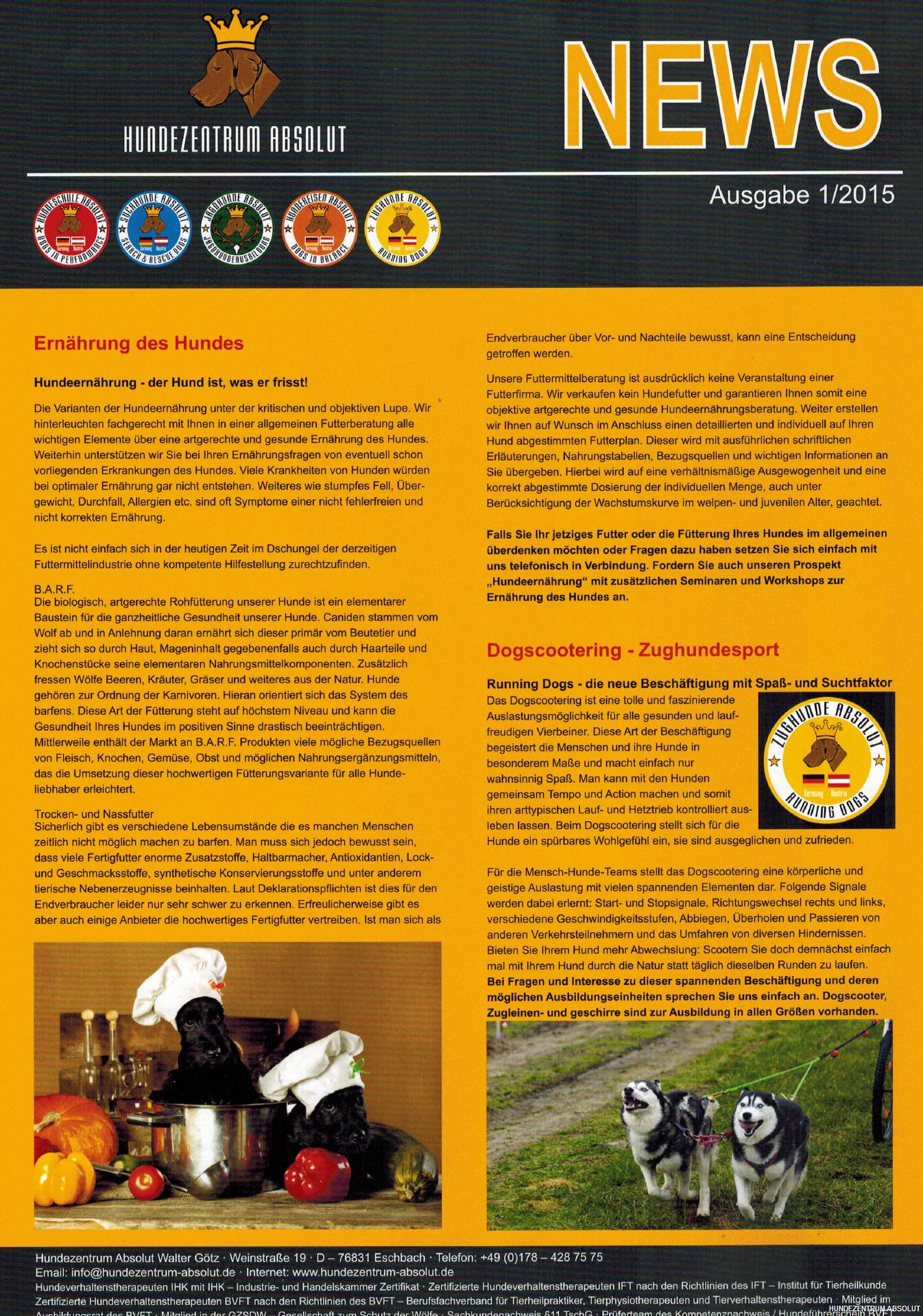 Sachkunde § 11 Tierschutzgesetz Das Trainerteam des Hundezentrum Absolut hat den Sachkundenachweis zur gewerbsmäßigen Hundeausbildung gem. §11 Tierschutzgesetz.